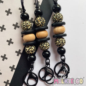 Our 'Ashley’ keyring features a range of 22mm, 19mm & 15mm silicone, wood and acrylic beads with a Black 70mm Lobster clasp.