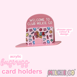 Add a professional and stylish touch to your setup with our custom acrylic business card holder. Perfect for desks, retail counters, and market stalls, this personalised accessory helps you showcase your business cards in a sleek, on-brand way.