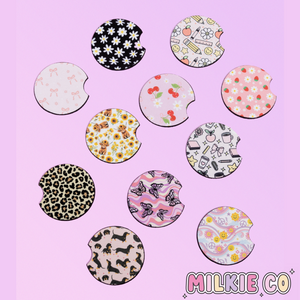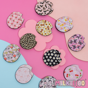 Say goodbye to sticky cup holders and hello to cute, functional vibes. These coasters are made from durable neoprene with a grippy backing to stay put, even on bumpy rides. They’re 7 cm wide to fit most standard cup holders and feature vibrant sublimated designs that won't fade or peel.