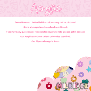 All of our Milkie Co Cake Toppers are designed and manufactured in Australia using high quality 3mm acrylic.
