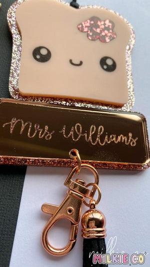 As a teacher, my students absolutely adored this one! The glittery elements, the cute little face on the toast and then the black leather tassel really give this lanyard a step up! If you are serious about your lanyard game - this should be in your basket!