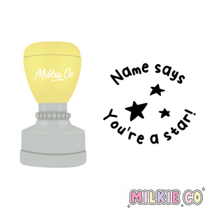 This round 32mm refillable stamp can be personalised by name, ink colour. If you have any preference to stamp shell colour, please leave a note at checkout - otherwise it will come as pictured or as per available stock.