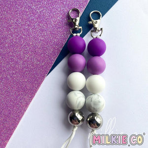 Our 'Amelia’ keyring features a range of 19mm & 15mm silicone and acrylic beads with 38mm Silver Swivel Clasp.
