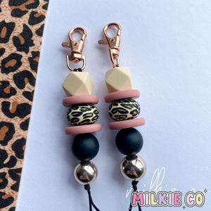 Our 'Spottie Lottie’ keyring features a range of 19mm & 15mm silicone & acrylic beads, on a Rose Gold 38mm Swivel Clasp and is available in a matching Car Diffuser.