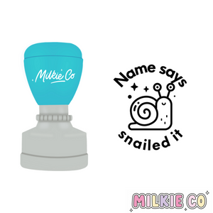 This round 32mm refillable stamp can be personalised by name, ink colour. If you have any preference to stamp shell colour, please leave a note at checkout - otherwise it will come as pictured or as per available stock.