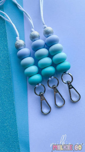 Our 'Wonderland’ lanyard features a range of 22mm & 15mm silicone and acrylic beads, on a white cord, with a Silver Premium Snap Hook Clasp.